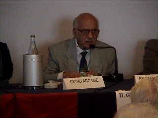 venerano la memoria di Sansone, ma nessuno pensa che uno che muore trafiggendo attorno a sé i nemici è un suicida: è un atto di guerra. Vorrei farvi una domanda: volevo sapere se c'era qualcuno delle SS italiane. Li hanno ammazzati tutti? Siamo comunque tutti legati da questo comune trauma dell'8 settembre '43. Tutti quelli che come me hanno visto naufragare l'idea della Terza Roma, dopo quella dei Cesari e dei Papi, quella del Popolo. Questo comune dolore ci ha resi prigionieri del passato. Tuttavia ci rendiamo conto di essere riprecitati nel pieno dell'attualità. Abbiamo giornali pieni di discussioni se Mussolini possa essere paragonato o meno a Saddam Hussein e abbiamo perosnaggi ridicoli, i Fassino, lo storico Tranfaglia, che ancora sessant'anni dopo fanno gli eroici soldatini contro un regime sconfitto nella prima metà del secolo scorso e di cui nessuno pensa la restaurazione. Quelli che non sono combattenti non sono neanche generosi. Sono sicuro che sia Pacciardi sia Delfini, gente che voleva uccidere Mussolini e lo ha odiato, se uno straniero avesse fatto loro il paragone di Mussolini con Saddam si sarebbero offesi perché al di là delle nostre polemiche storiche ci sono dei valori italiani che dobbiamo difendere insieme. Qui è stata fatta e vinta una Rivoluzione con i manganelli che ci distingue dalla sanguinosa Rivoluzione Francese delle ghigliottine e dello sterminio dei Vandeani. Una volta andai dal barbiere e c'era un libretto del Partito Comunista di filosofia di Stalin, poiché Stalin aveva anche la vanità di essere filosofo, e diceva: "Le differenze di quantità fanno anche le differenze di qualità". E' vero: cinquemila confinati politici in Italia fanno differenza rispetto ai milioni di sterminati nei gulag e nei lager. Ho scoperto l'espressione "Volontario di tutte le guerre", espressione tipica del cursus honorum di tutti i gerarchi fascisti. Alfredo Morea era un giovane esponente repubblicano di Fabriano, interventista, poi legionario fiumato. Finito Fiume andò volontario con Grimm per l'indipendenza del Marocco, perché "Volontario di tutte le guerre" prima che fascista era un'espressione tipica repubblicano. Poi in Italia diventa più giovane deputato repubblicano e poi segretario dell'Aventino. Poi viene il regime e viene mandato al confino politico da cui esce per andare volontario in Africa Orientale, perché lui era antifascista ma nella sua concezione non era concepibile non andare ad una guerra. Prende la medaglia d'argento in Etiopia. Ritorna in Italia, dopo un po' ritorna al confino e poi si fa mandare in Africa Orientale alla fine della guerra. Partecipa alla difesa dell'impero, dividela bandiera prima della resa e se la mette sotto la camicia per salvarla e finisce in India. Al momento della scelta di collaborazione aveva disgusto, da antifascista, per Badoglio e per il Re. Ho voluto raccontare questo episodio della sua permanenza a Yol per confermare la varietà di posizioni dei non collaboratori. PARLATO Apriamo il dibattito. COLUCCI Intanto volevo rassicurare il dottor Chiocci. Sono un consigliere provinciale di A.N., qui in questa sal sono presenti un consigliere regionale di AN, il presidente proivinciale di AN, due consiglieri provinciali e due consiglieri di