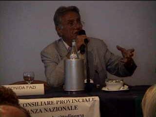 rispettata di ogni flotta ar,arta del tempo nel mondo. Combattente volontario del Ptrimo plotone della terza compagnbia dal febbraio 1944 ho partecipato ai fatti d'arme dell'agro pontinoper la difesa di Roma fronteggiando sulla testa di ponmte di Anzio e Nettuno gli anglo americani sbarcati il 22 gennaio. In aprile nello scontro fra uno squadroine di carri sherman e un battaglione di canadesi della quinta armata americana contro tre avamposti situati viciniossimo al nemico ci difendemmo e gli infliggemmo perdite a loro con morti e feriti nostri ma i superstiti involontariamente vivi vennero catturati. Diventai così un POW Prisoner of War ed ebbi una matricola 81I238150 mentre non l'avevo avuta come soldato e personalmente ero andato al fronte senza aver giurato. Sono passato per il campo 326 di Aversa poi per il 151 di Biserta, il 131 di Orano e il 21 settembre 1944 sono entrato in quello di Hereford nel Texas. Il 7 agosto 1945 gli americani ci hanno sottoposto per la firma il modulo di collaborazione che ho rifiutato. E' da notare il fatto avvenne fra l'atomica del 6 e quellla del 9 agosto e che la guerra in Europa era finita l'8 maggio. Ho lasciato Hereford il 31 gennaio 1946 come POW nopn collaboratore, sono ritornatto nella mia casa il 2 marzo del 46. Vi indirizzo queste poche parole in quanto da 6 anni l'assemblea e la direzione della nostra associazione mi hanno designato quale responsabile del gruppo Giovani NON e ne sopno sinceranente molto onorato perché i giovani sono il futuro e il fatto che gli antichi- noi non siamo vecchi- posssano fianlmente raccontare in pubblico ai giovani le loro storie modeste ma vere è giusto e utile e per noi anche bello e commovente. Ragazzo, voi siete i nostri figli e nipoti. I NON oggi sono tutti qui, i presenti, gli impediti e coloro che sono andatin avanti. E' una staffetta meravigliosa. Lo sdo che sono frasi retoriche, ma hanno anche un contenuto reale nel quale abbiamo creduto e per il quale abbiamo agito con coerenza e taciuto. Siamo qui soltanto per testimoniarlo, realtà e retorica, ma anche il mito è retorica, anche le Termopili, anche la poesia, la'amore, la commozione. Proprio questa settimana si è registrato il 60° anniversario di una delle date più tristi e tragiche della storia d'Italia. Mi auguro, anzi non dubito, che le persone ogii presenti a rappresentare tre generazioni non si accapiglieranno. Penso che ognuno saprà dimostrare di essere di una parte sola, poiché se divisi tutti hanno sofferto e pagato il loro conttributo, chi più, chi meno, per il futuro occorre sentirsi soltanto Italiani. Tutto cominciò con la frase "La guerra continua" comunicato ufficialmente dal nuovo governo dopo il 25 luglio 1943. Quell'intermezzo di 45 giorni assurdi, caotici, dilettanteschi, favorì e detreminò la dissoluzione che, essendo prevedibile, forse è prorio quanto si voleva conseguire. Ciò che avvenne dopo purteroppo era ciò che era fatale avvenisse. Se da una parte non si badò al prezzo pur di abbattere un regime, semmai lo avrebbero dovuto fare tre o quattro anni prima, dall'altra la furnberia nazionale portò il popolo comprensibilmente a fare o non fare, pensando in primo luogo alla sopravvivenza, eppure nonostante quelle condizioni gli italiani continuarono a combattere quasi per altri due anni, divis appunto, come guelfi e ghibellini, bianchi e neri, rossi e neri e via almanaccando. Personalmente ho avuto la fortuna dfi fare la guerra soltanto contro il nemico, non quella civile. In quei due anni sono accaduti tanti fatti, una parte di essi non è stata raccontata. Se non venissero testim,oniate un giorno per le generazioni succesasive sarebbe come se non fossero mai accaduti ma la storia, piaccia o no, è il notariato di tutta la realktà. Chi si ritira dalla storia non ha che lasciarsi morire poiché muore comunque e allora mettiamo tutti le prove sul tavolo. Non si capisce il sistematicvo atteggiamento manicheo che gli italiani hanno nel DNA in base al quale se un soldato o un prigioniero dopo l'8 settembre non vuol collaborare con i tedeschi è buono; se un soldato prigioniero non vuol collaborare con inglesi, russi e americani è cattivo. E' successo pure al mio libro "Avevamo vent'anni" capitato fortuitamente in mano a Giorgio Roscià (lo porto solo come esempio). Egli ne fa una recensione nel dicembre 1990 nel numero 34 della rivista "studi e ricerche di storia contemporanea". Tredici anni fa non si parlava ancora di revisionismo, poiché il muro era appena caduto e i ragazzi della Repubblica Sociale erano stati soltanto ignorati. Roscià infatti non usa quell'espressione, giustifica la pubblicazione e ne fa una critica libraria in fondo positiva pur mostrando pèregiudizio, non conoscenza e superficialkità nei confronti di persone che stavano dalla parte opposta alla sua. Comunque, e mi è andata bene, il senso del giudizio è che noi stavamo dalla parte sbagliata ed è proprio ciò che ancora oggi, senza arroganza, noi rifiutiamo. Il nostro discorso, a sessant'anni dai fatti, non è proposto in un tribunale per essere assolti o condannati; ci interessa invece che i giovani sappiano per essere capiti. La storia di quegli anni va riuscritta perché sarano gli elementi da aggiungere che produrranno quelle rettifichw che consentiranno ai posteri con tutti i dati in mano di comporre un quadro unitario, veritiero per poter emettere un giudizio. Nella storia di ciascun popolo ci sono ombre e luci, più le prime che le seconde, ma ad ogni popolo va riconosciuto il diritto di conoscere tutti i fatti , non di esserne denudato, perché in quei fatti sono registrati anche ideali, abnegazioni, sofferenza, pazienza, speranze, delusioni tenacia di ciascuno. Un popolo è una grande orchestra nella quale pure l'ottavino e il trianhgolo fanno sentire le loro note. I giovani devono sapere da dove vengono per capire dove dirigersi. Mentre tutti ipopoli accelleravano verso il nuovo millennio noi calcificavamo la nostra arretratezza. C